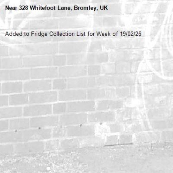 Added to Fridge Collection List for Week of 19/02/26-328 Whitefoot Lane, Bromley, UK 10/02/2026 09:41 Added to Fridge Collection List for Week of 19/02/26