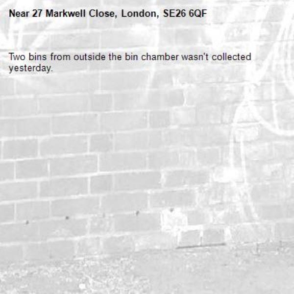Two bins from outside the bin chamber wasn't collected yesterday.