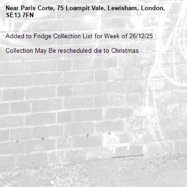 Added to Fridge Collection List for Week of 26/12/25 Collection May Be rescheduled die to Christmas