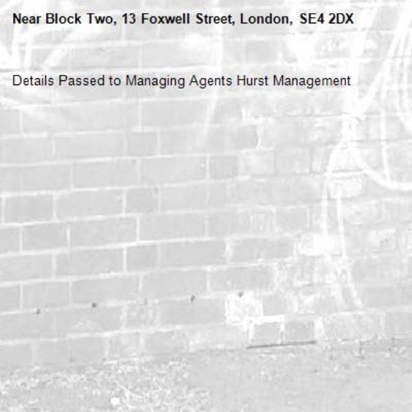 Details Passed to Managing Agents Hurst Management
