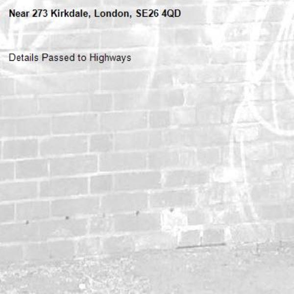 Details Passed to Highways-273 Kirkdale, London, SE26 4QD 30/01/2026 11:44 Details Passed to Highways
