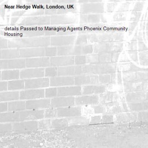 details Passed to Managing Agents Phoenix Community Housing-Hedge Walk, London, UK 27/01/2026 10:58 details Passed to Managing Agents Phoenix Community Housing