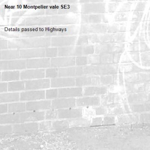 Details passed to Highways-10 Montpelier vale SE3 11/06/2024 13:37 Details passed to Highways