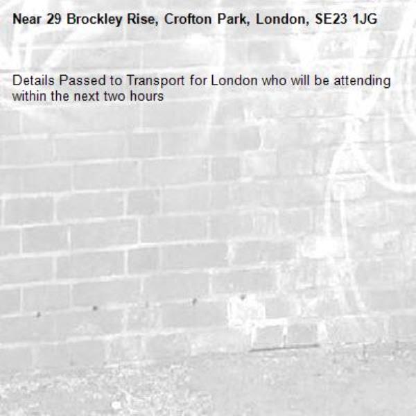 Details Passed to Transport for London who will be attending within the next two hours-29 Brockley Rise, Crofton Park, London, SE23 1JG 06/01/2026 13:17 Details Passed to Transport for London who will be attending within the next two hours