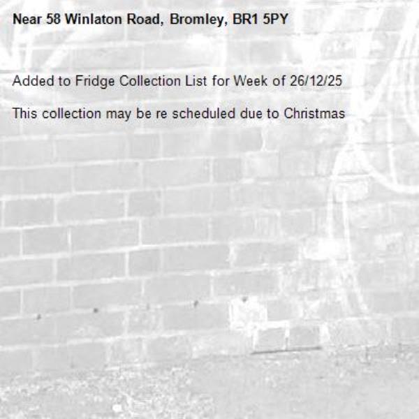 Added to Fridge Collection List for Week of 26/12/25 This collection may be re scheduled due to Christmas