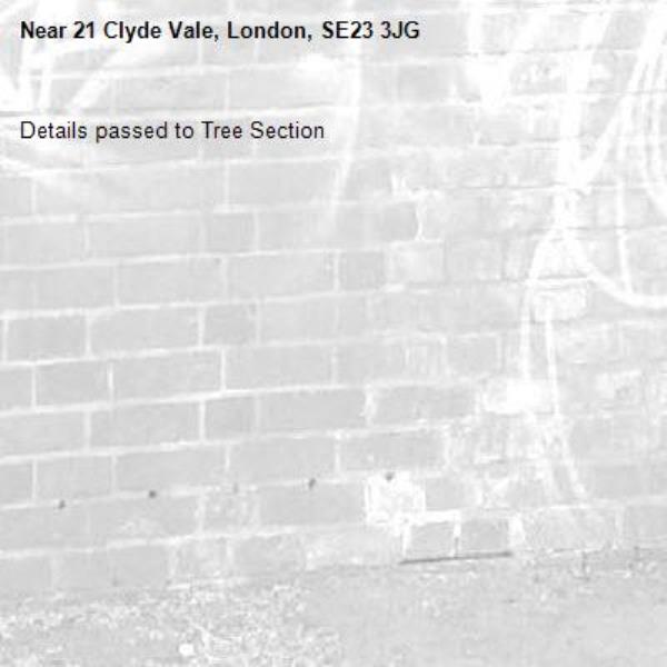 Details passed to Tree Section-21 Clyde Vale, London, SE23 3JG 16/12/2025 10:09 Details passed to Tree Section