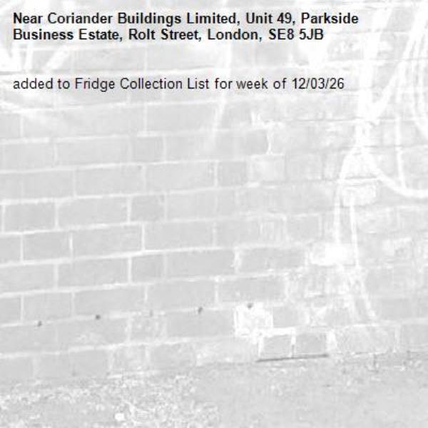 Near Coriander Buildings Limited, Unit 49, Parkside Business Estate, Rolt Street, London, SE8 5JB