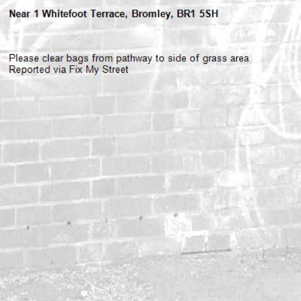 Please clear bags from pathway to side of grass area<br/>Reported via Fix My Street