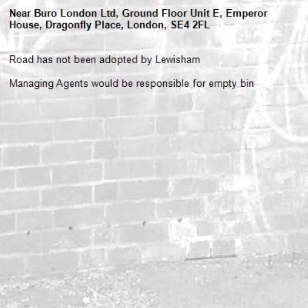 Road has not been adopted by Lewisham Managing Agents would be responsible for empty bin
