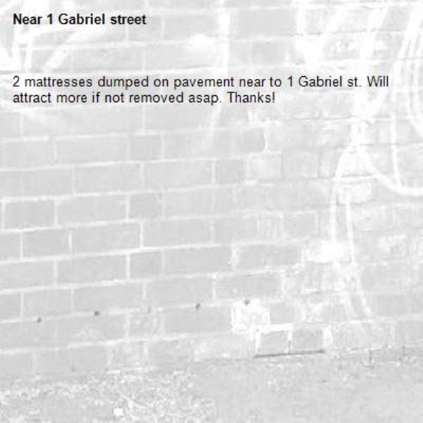 2 mattresses dumped on pavement near to 1 Gabriel st. Will attract more if not removed asap. Thanks!