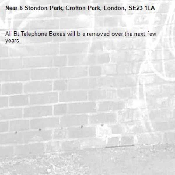 All Bt Telephone Boxes will b e removed over the next few years
