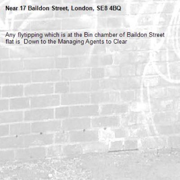 Any flytipping which is at the Bin chamber of Baildon Street flat is Down to the Managing Agents to Clear