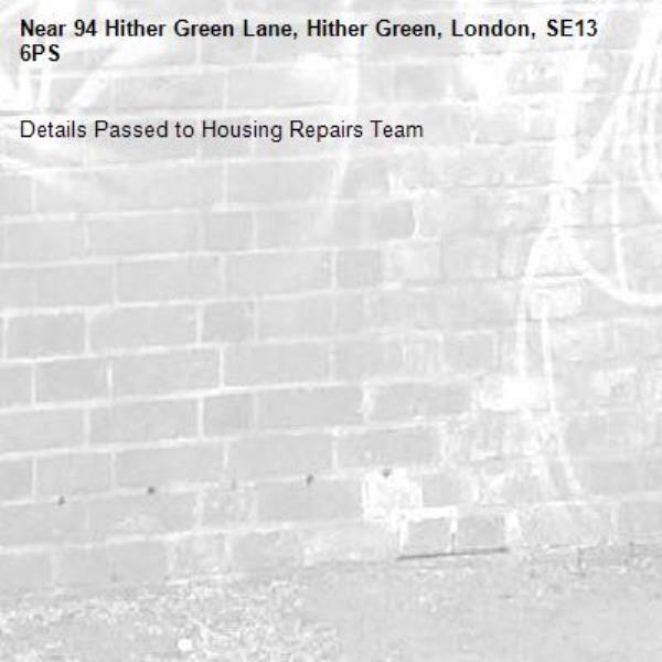 Details Passed to Housing Repairs Team