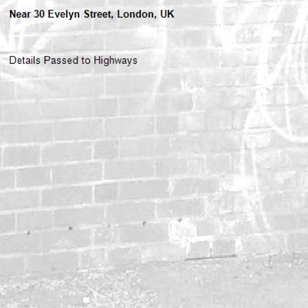Details Passed to Highways-30 Evelyn Street, London, UK 28/01/2026 09:57 Details Passed to Highways