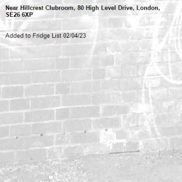 Added to Fridge List 02/04/23-Hillcrest Clubroom, 80 High Level Drive, London, SE26 6XP 30/03/2023 12:45 Added to Fridge List 02/04/23