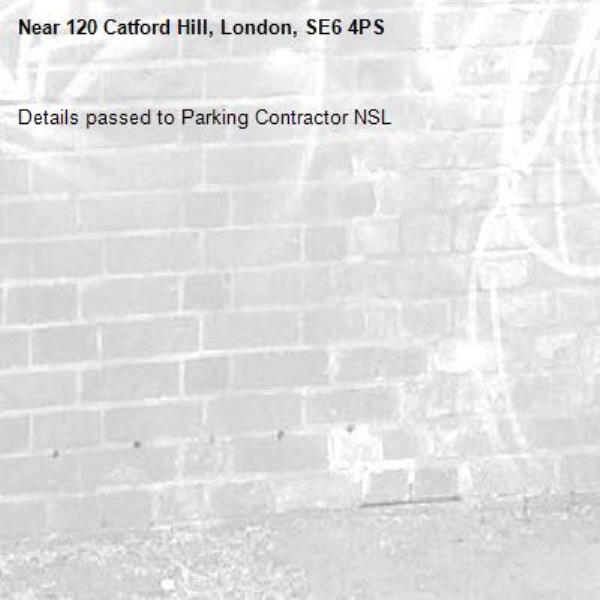 Details passed to Parking Contractor NSL-120 Catford Hill, London, SE6 4PS 23/02/2026 16:36 Details passed to Parking Contractor NSL