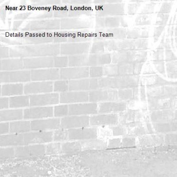 Details Passed to Housing Repairs Team