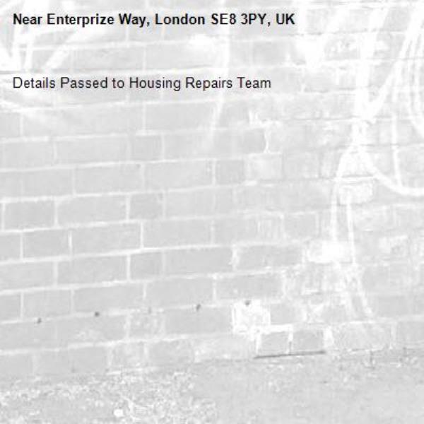 Details Passed to Housing Repairs Team-Enterprize Way, London SE8 3PY, UK 11/03/2026 12:34 Details Passed to Housing Repairs Team