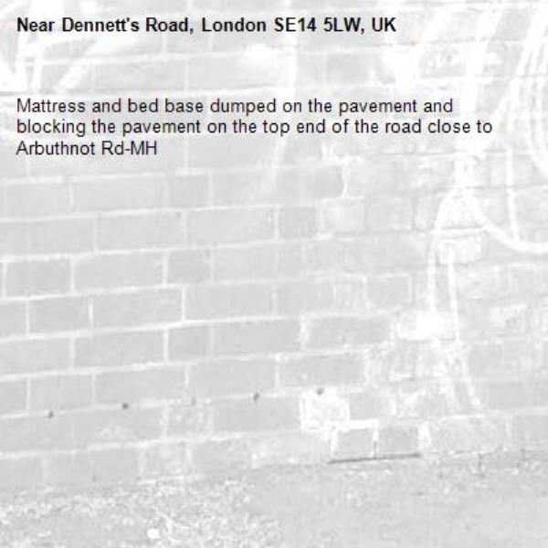 Mattress and bed base dumped on the pavement and blocking the pavement on the top end of the road close to Arbuthnot Rd-MH