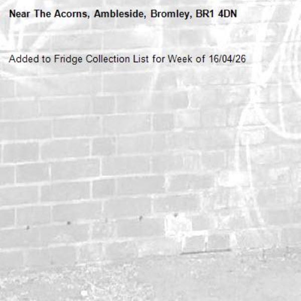 Added to Fridge Collection List for Week of 16/04/26-The Acorns, Ambleside, Bromley, BR1 4DN 07/04/2026 17:34 Added to Fridge Collection List for Week of 16/04/26