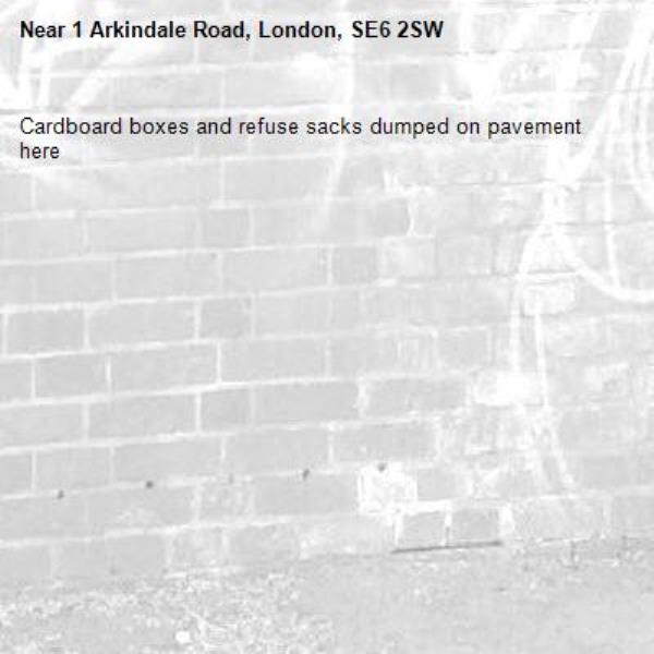 Cardboard boxes and refuse sacks dumped on pavement here