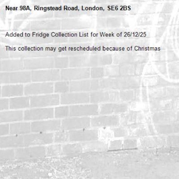 Added to Fridge Collection List for Week of 26/12/25 This collection may Be re scheduled due to Christmas