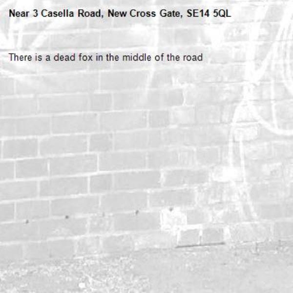 There is a dead fox in the middle of the road