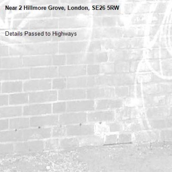 Details Passed to Highways-2 Hillmore Grove, London, SE26 5RW 16/01/2026 14:26 Details Passed to Highways