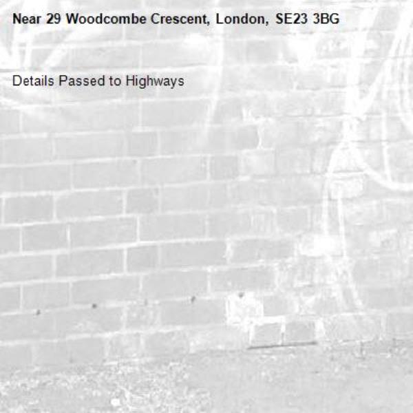 Details Passed to Highways-29 Woodcombe Crescent, London, SE23 3BG 14/01/2026 11:36 Details Passed to Highways
