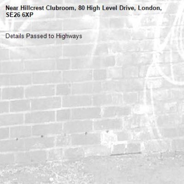 Details Passed to Highways