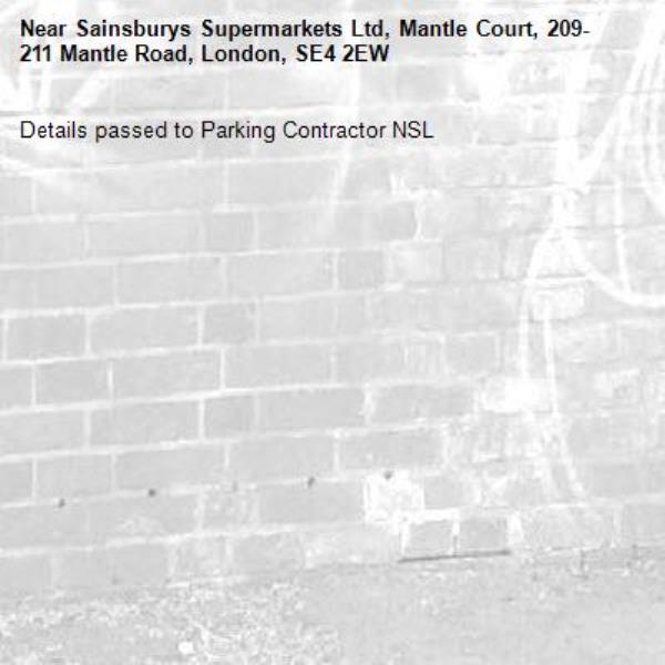 Details passed to Parking Contractor NSL