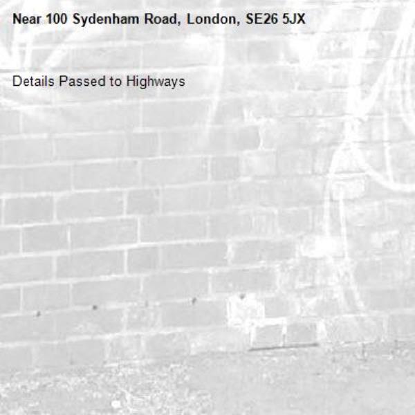 Details Passed to Highways-100 Sydenham Road, London, SE26 5JX 30/01/2026 15:14 Details Passed to Highways
