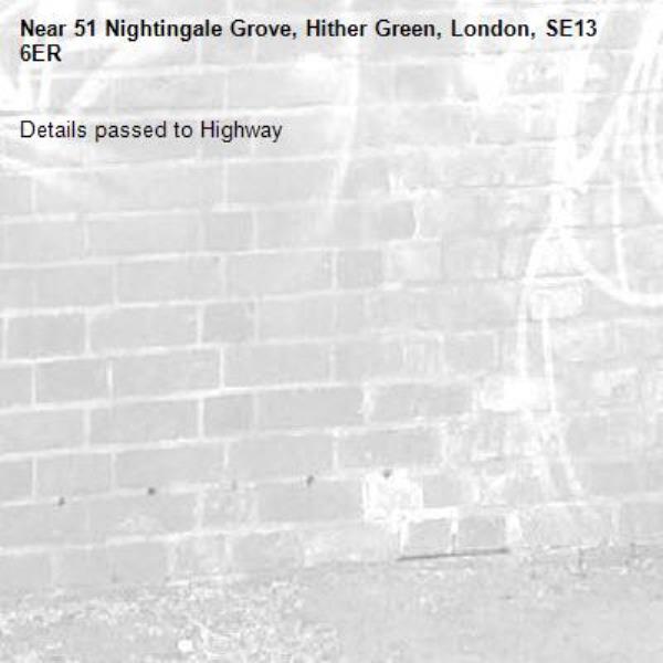 Details passed to Highway-51 Nightingale Grove, Hither Green, London, SE13 6ER 13/10/2025 10:32 Details passed to Highway