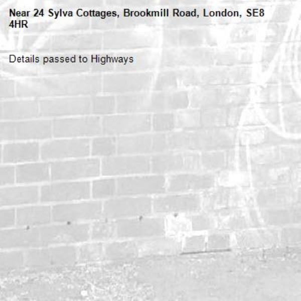Details passed to Highways-24 Sylva Cottages, Brookmill Road, London, SE8 4HR 21/10/2025 13:51 Details passed to Highways