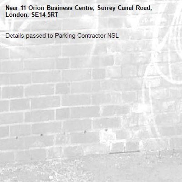 Details passed to Parking Contractor NSL-11 Orion Business Centre, Surrey Canal Road, London, SE14 5RT 05/01/2026 15:54 Details passed to Parking Contractor NSL