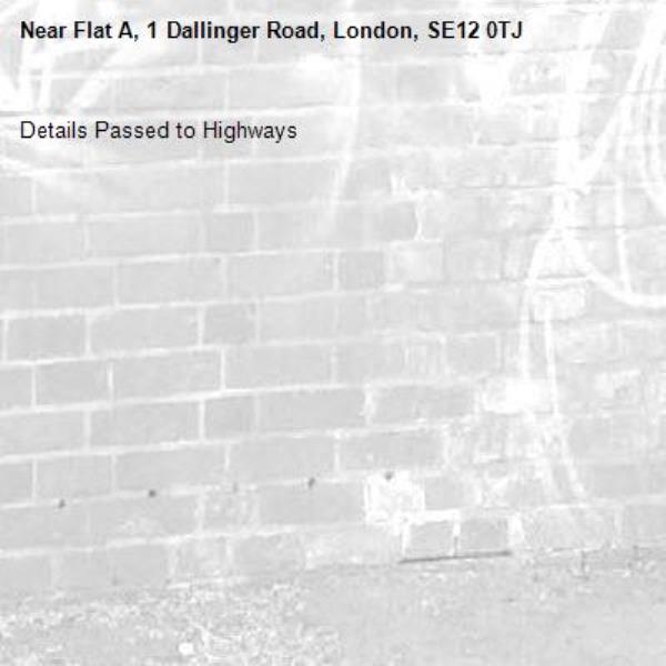 Details Passed to Highways-Flat A, 1 Dallinger Road, London, SE12 0TJ 20/01/2026 15:14 Details Passed to Highways