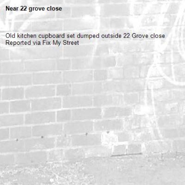 Old kitchen cupboard set dumped outside 22 Grove close<br/>Reported via Fix My Street