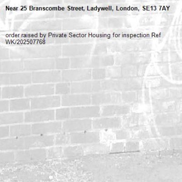 order raised by Private Sector Housing for inspection Ref WK/202507768
