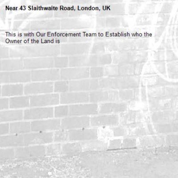 This is with Our Enforcement Team to Establish who the Owner of the Land is-43 Slaithwaite Road, London, UK 10/11/2025 14:10 This is with Our Enforcement Team to Establish who the Owner of the Land is