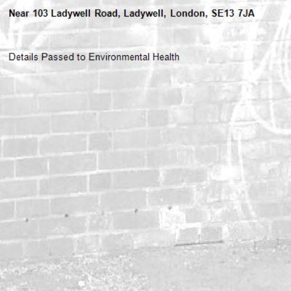 Details Passed to Environmental Health-103 Ladywell Road, Ladywell, London, SE13 7JA 13/02/2026 14:20 Details Passed to Environmental Health