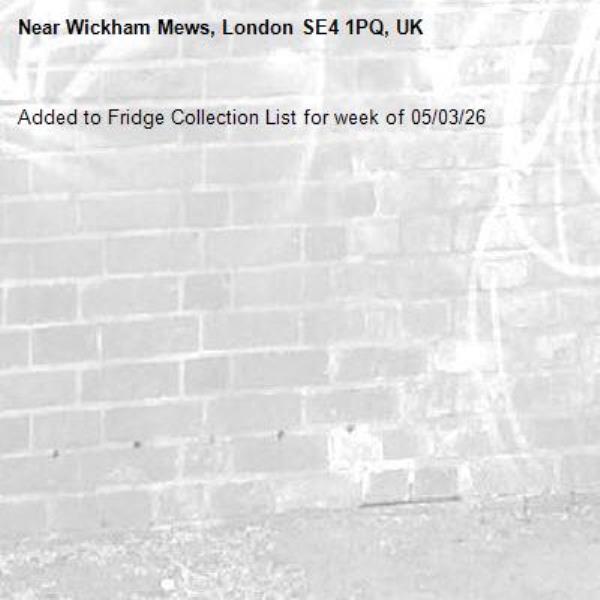 Added to Fridge Collection List for week of 05/03/26-Wickham Mews, London SE4 1PQ, UK 26/02/2026 13:56 Added to Fridge Collection List for week of 05/03/26
