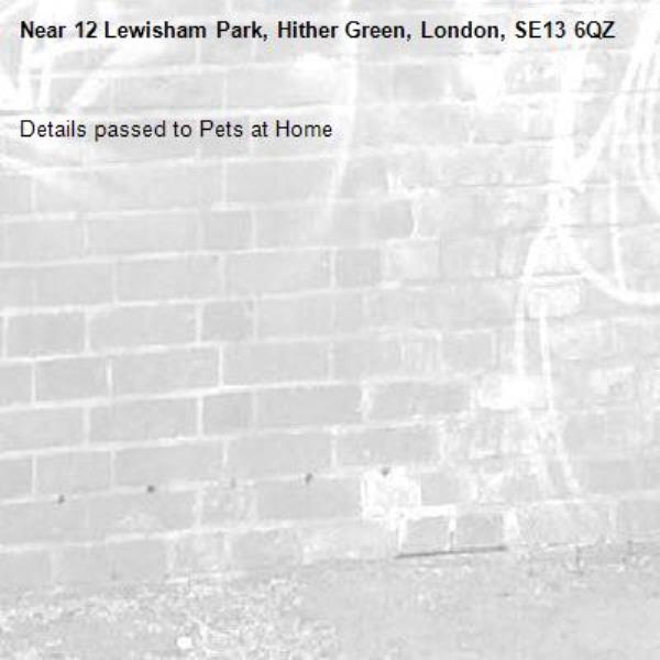 Details passed to Pets at Home
