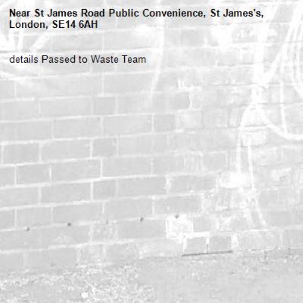 details Passed to Waste Team-St James Road Public Convenience, St James's, London, SE14 6AH 12/03/2026 12:43 details Passed to Waste Team
