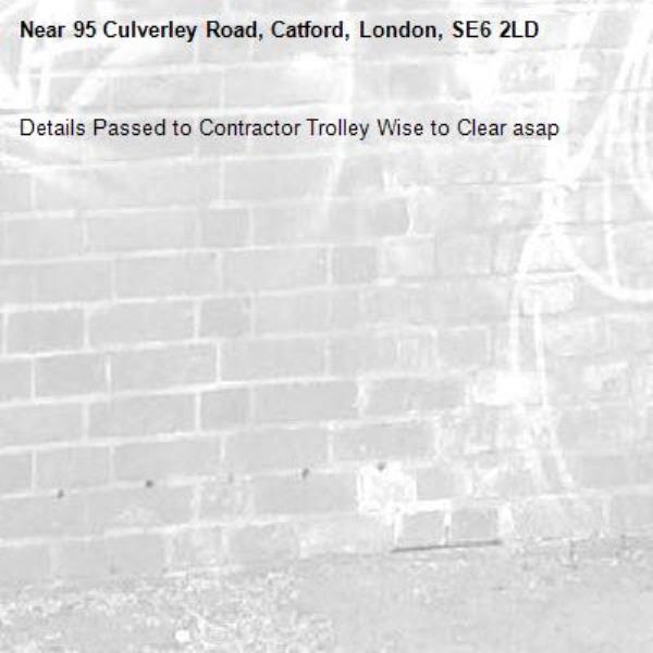 Details Passed to Contractor Trolley Wise to Clear asap