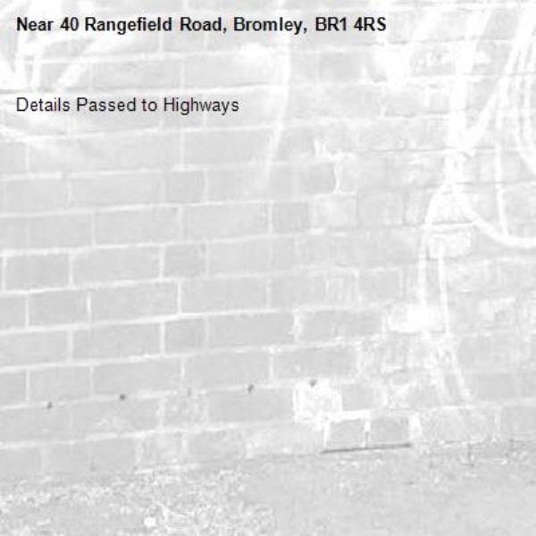 Details Passed to Highways-40 Rangefield Road, Bromley, BR1 4RS 09/01/2026 12:56 Details Passed to Highways