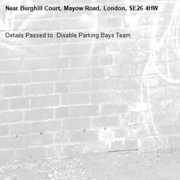 Details Passed to  Disable Parking Bays Team-Burghill Court, Mayow Road, London, SE26 4HW 25/11/2025 13:54 Details Passed to Disable Parking Bays Team