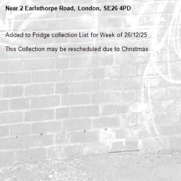 Added to Fridge collection List for Week of 26/12/25 This Collection may be rescheduled due to Christmas