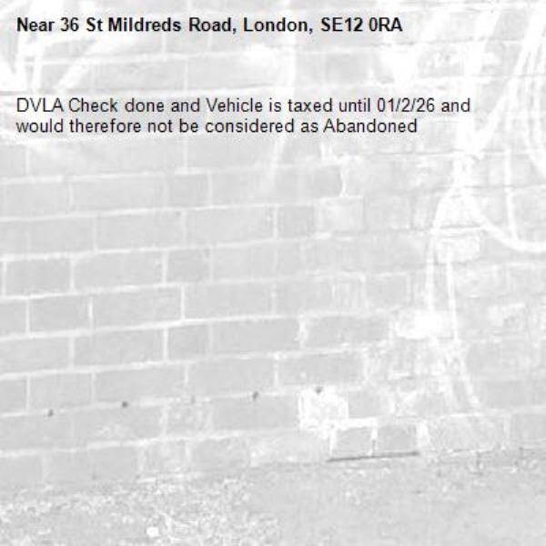 DVLA Check done and Vehicle is taxed until 01/2/26 and would therefore not be considered as Abandoned