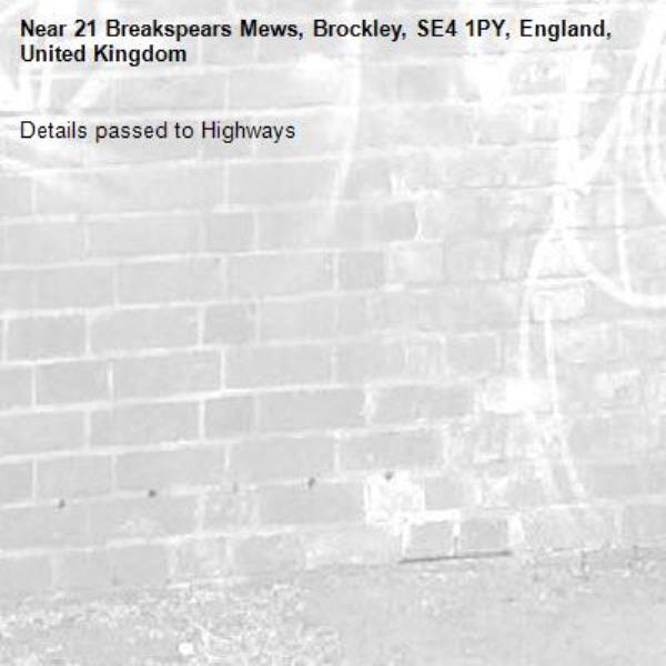 Details passed to Highways