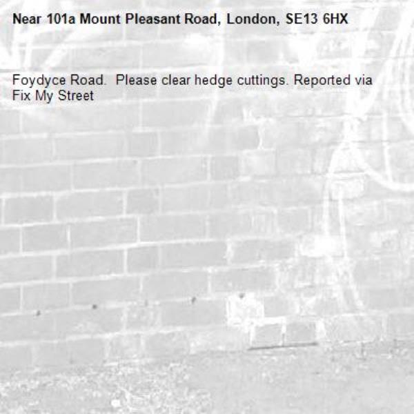 Foydyce Road. Please clear hedge cuttings. Reported via Fix My Street